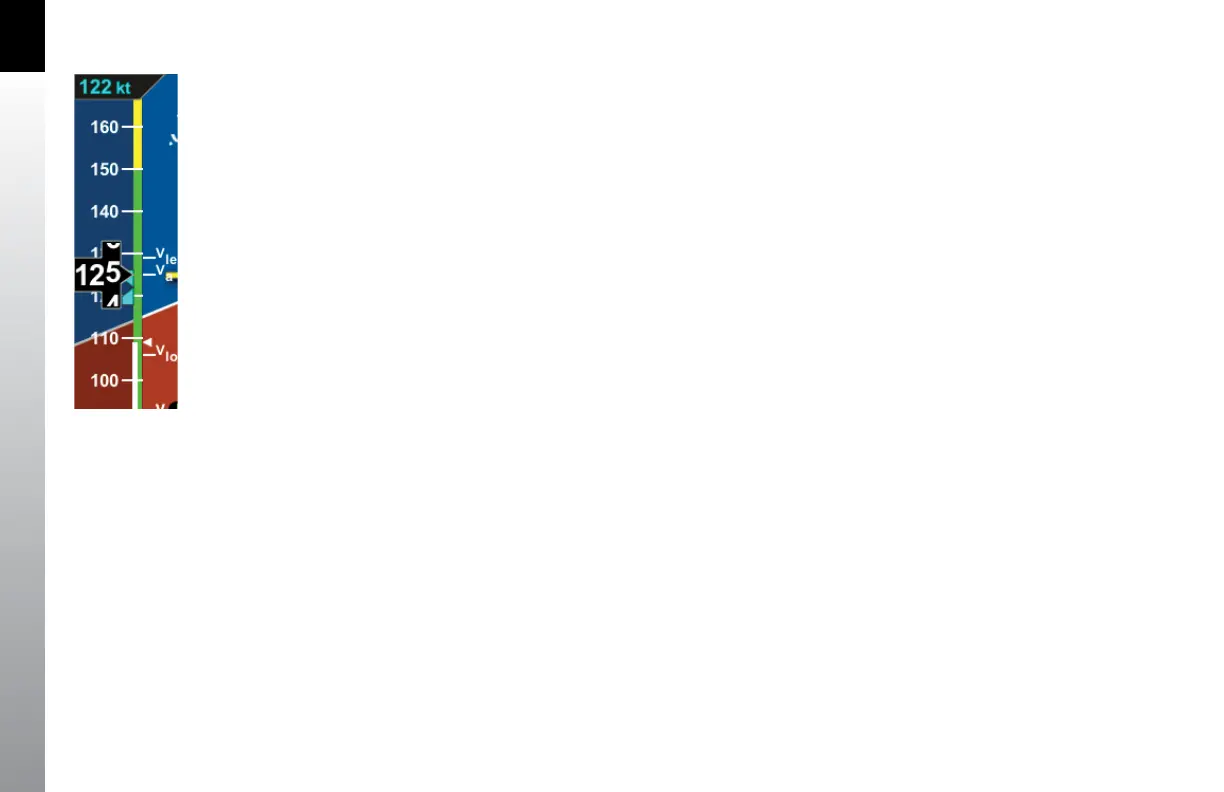 Textual Vspeed markers can also be shown on the airspeed tape (e.g., Vx, Vy, Va, etc.).