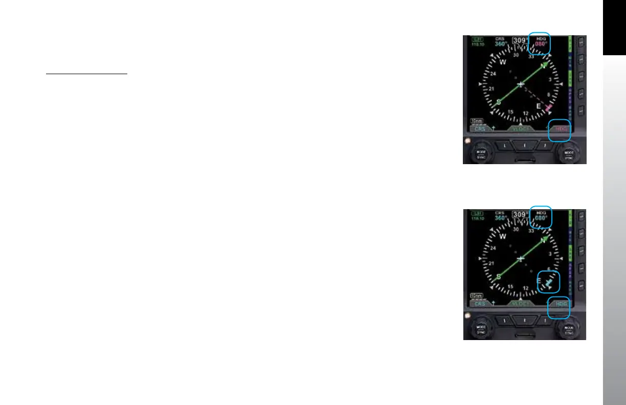 1. Press the Right Knob until HDG displays above the knob and the HDG eld