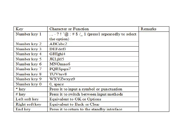 The keyboards for English input and numeric input are defined in the following table: