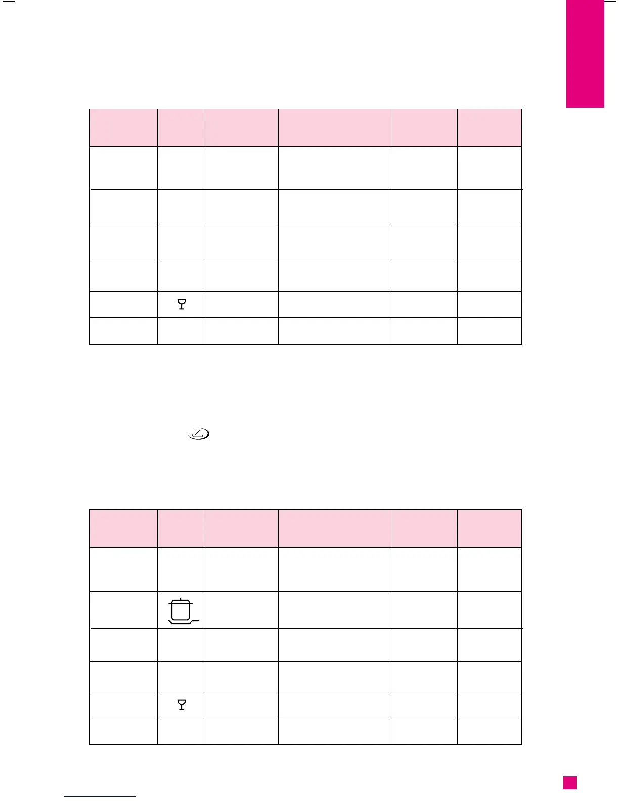 PROGRAMMTABELLE - MODELL MIT 5 TASTE