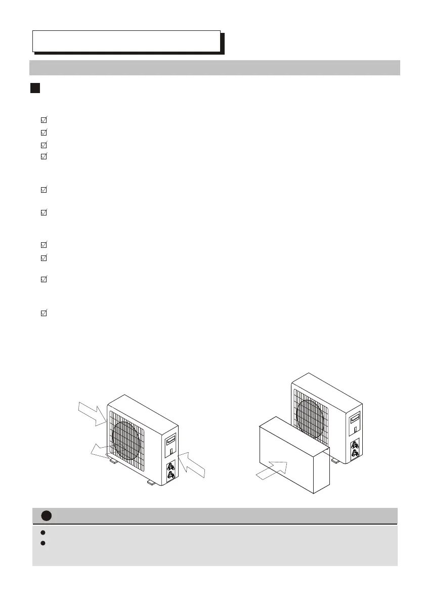 The outdoor unit should be installed in a location that meets the following requirements: