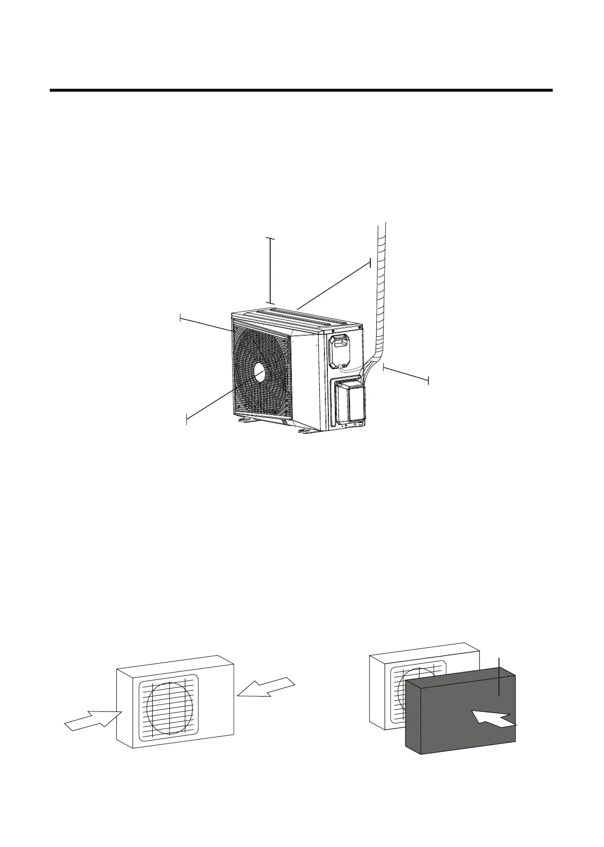 Install unit so that air outlet fan is at a 90° angle to the direction of the wind. If needed, build a barrier in front
