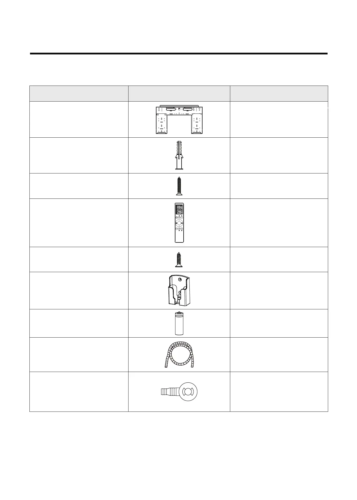 The air conditioning system comes with the following accessories. Use all of the installation parts and