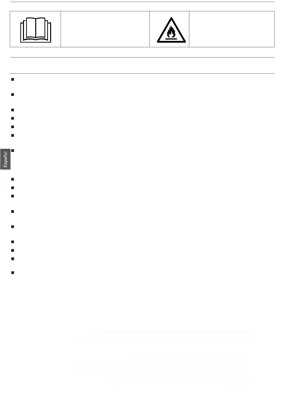 El aparato se debe almacenar en una habitación sin fuentes de ignición en operación continua (por ejemplo: