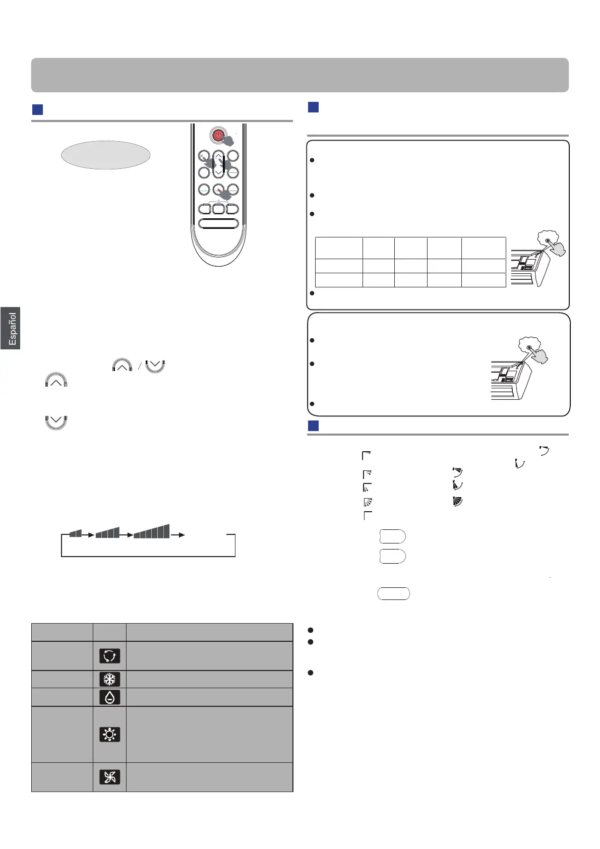En el modo VENTILADOR, la unidad no funcionará en los modos de
