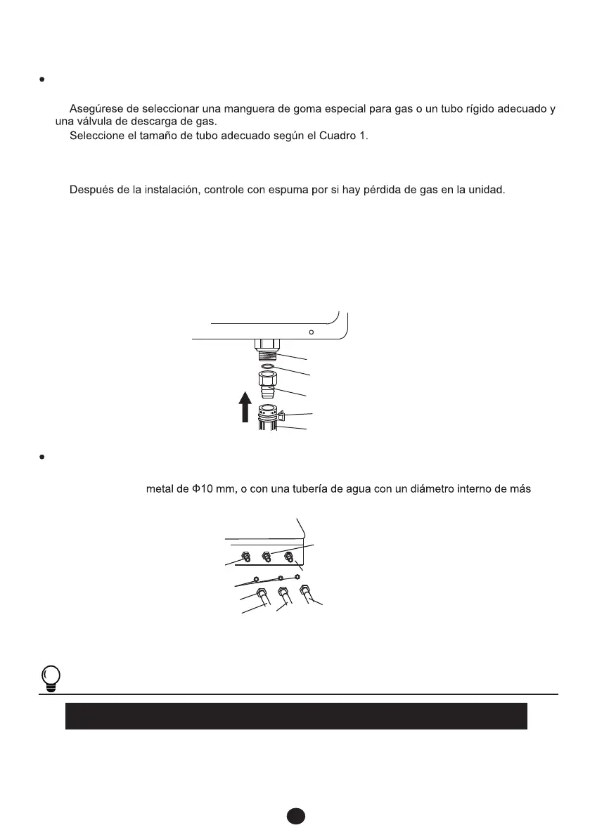 Conecte la unidad a la junta de gas con una rosca de tubo G1/2.