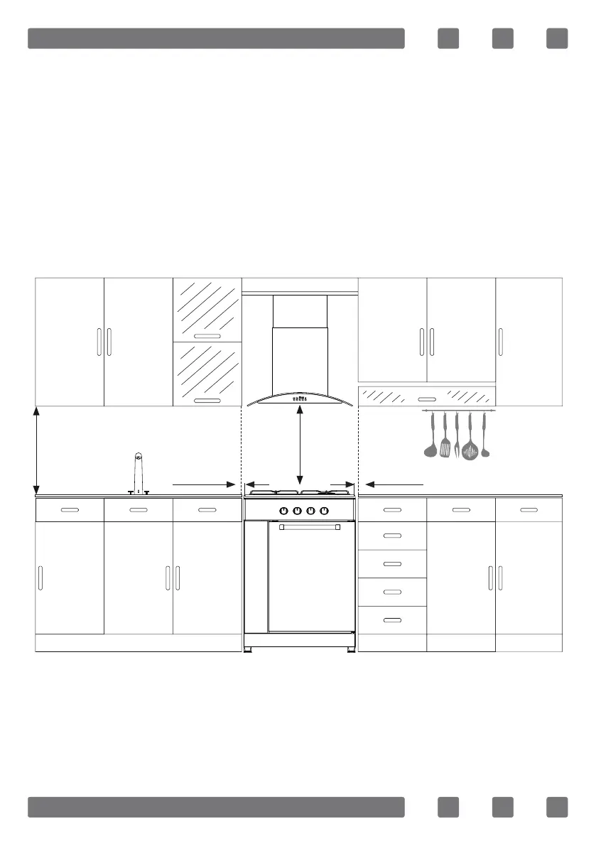 that there is a distance of at least 400 mm between the upper hob surfac-