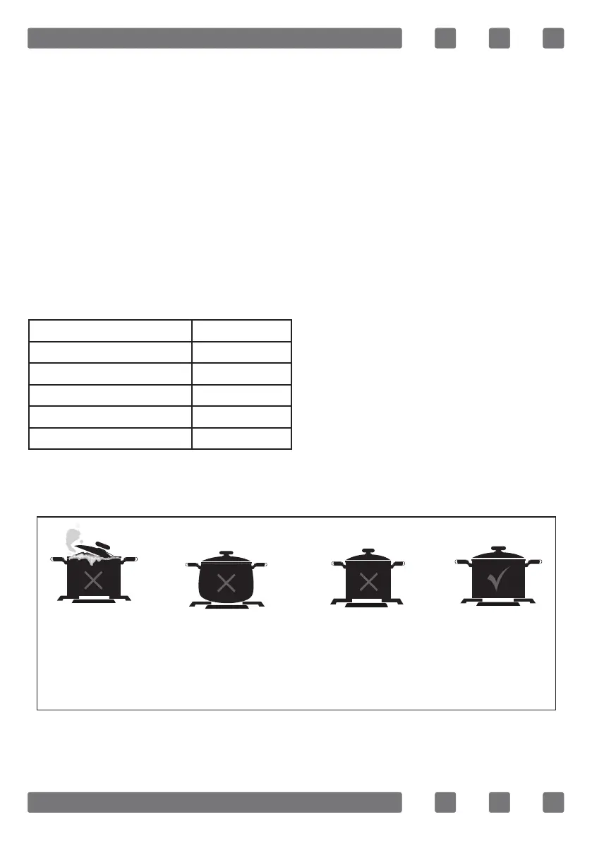 ADVERTENCIA: El diámetro de olla a utilizar en aparato