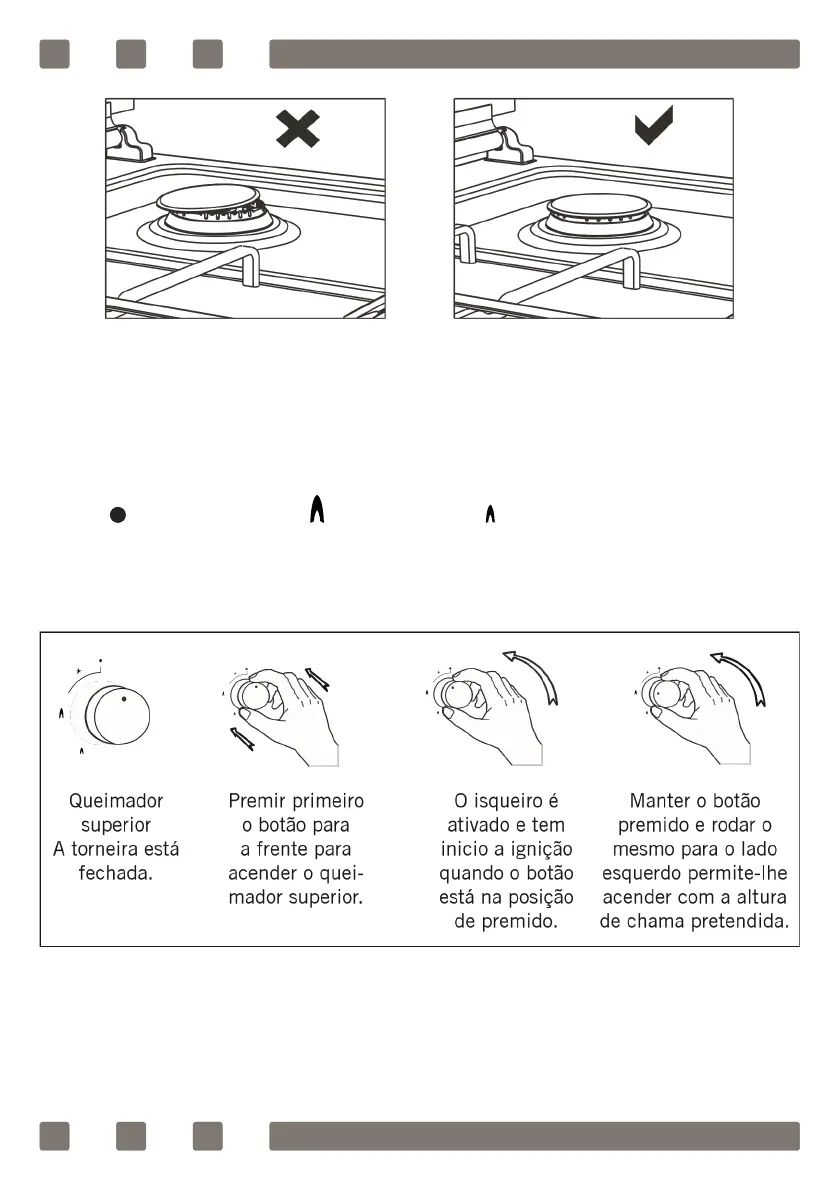 com as instruções, vendo chama no queimador e depois empurrar o botão para