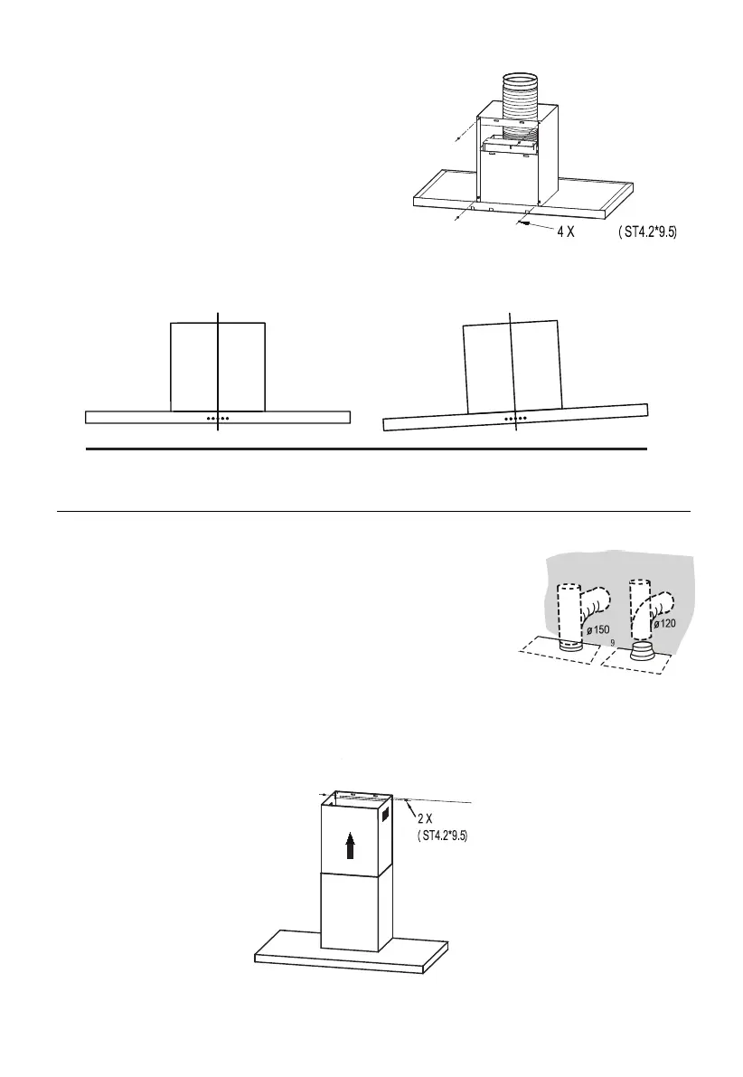 • Conecte la chimenea decorativa superior 2.2 y el soporte de fijación chimenea 21 con 2