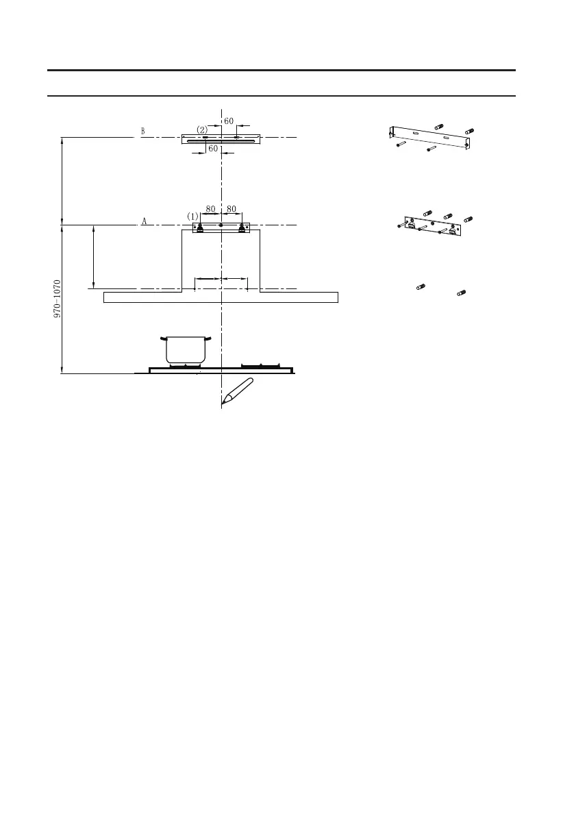 A horizontal line A at 970 – 1070 mm above the cooker top.