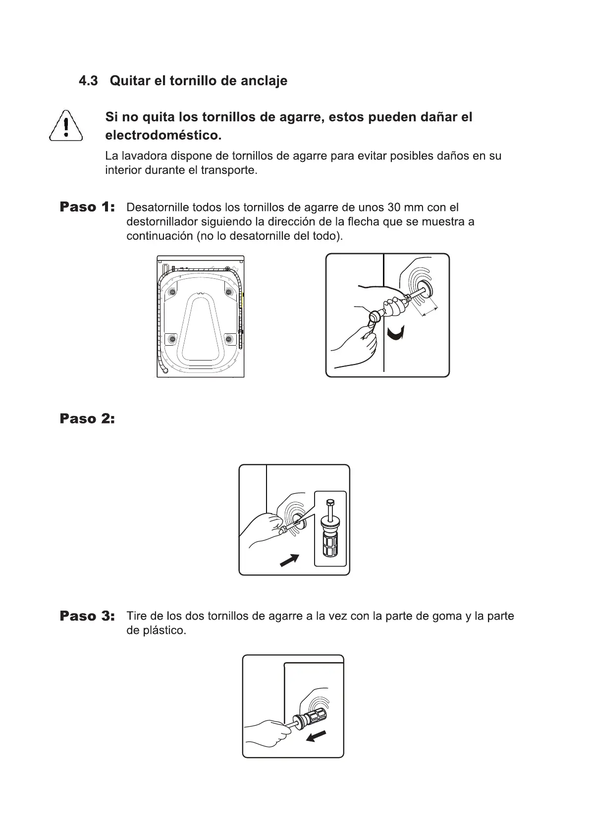 Presione los cuatro tornillos de transporte en horizontal y hacia adentro