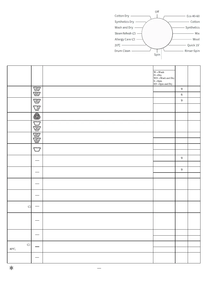 Please select appropriate washing temperature according to instruction of care label attached to clothes, if not, clothes can be damaged