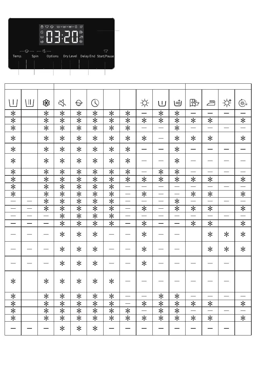 : Optional Functions Yes : Detergent Required : Cannot be selected -- : Temperature of unheated water