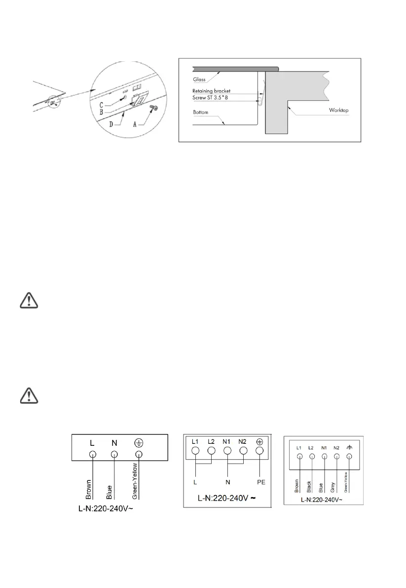 9.7 Connecting the hob to the mains power supply