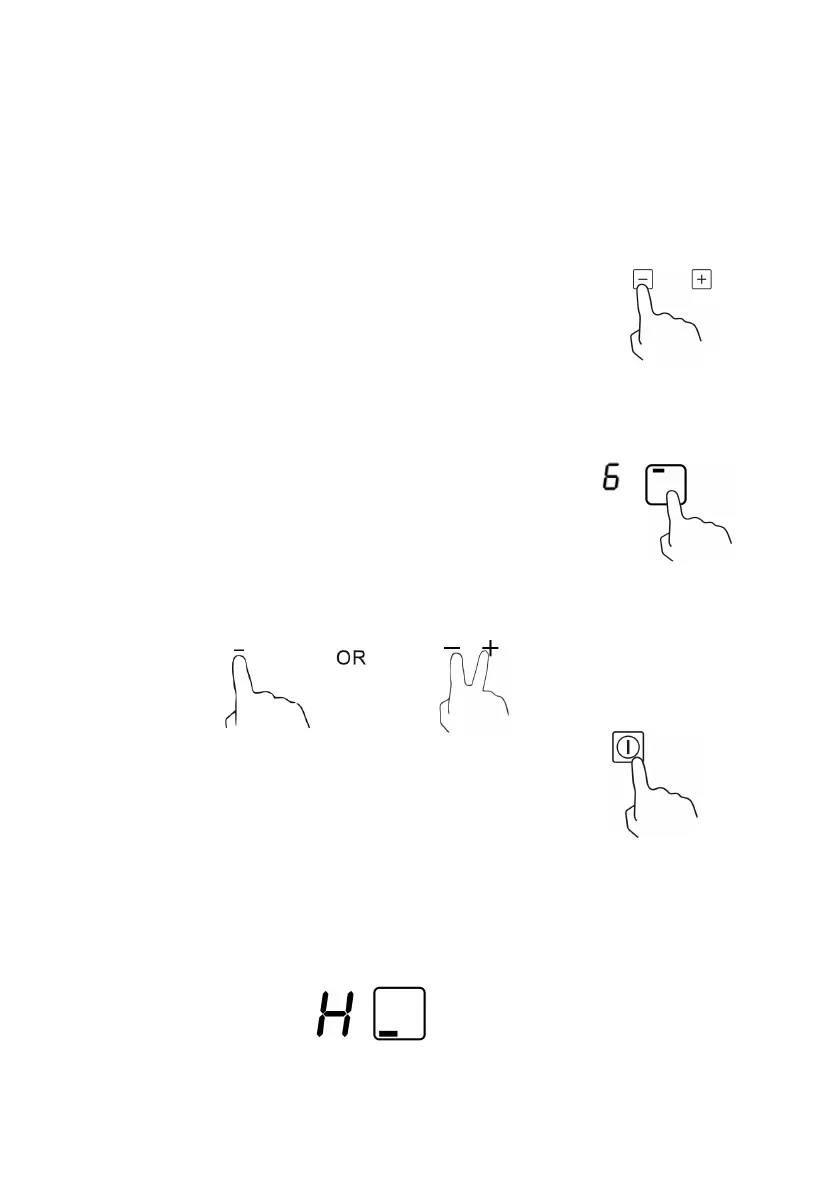 Tocar la zona de cocción desplazándose hacia abajo a "0" o tocar "-" y "+" a