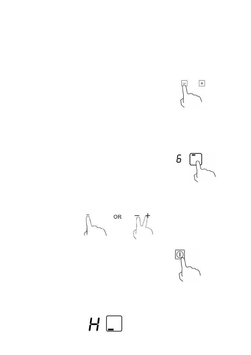 4. Select a heat setting by touching the “-“ or “+”
