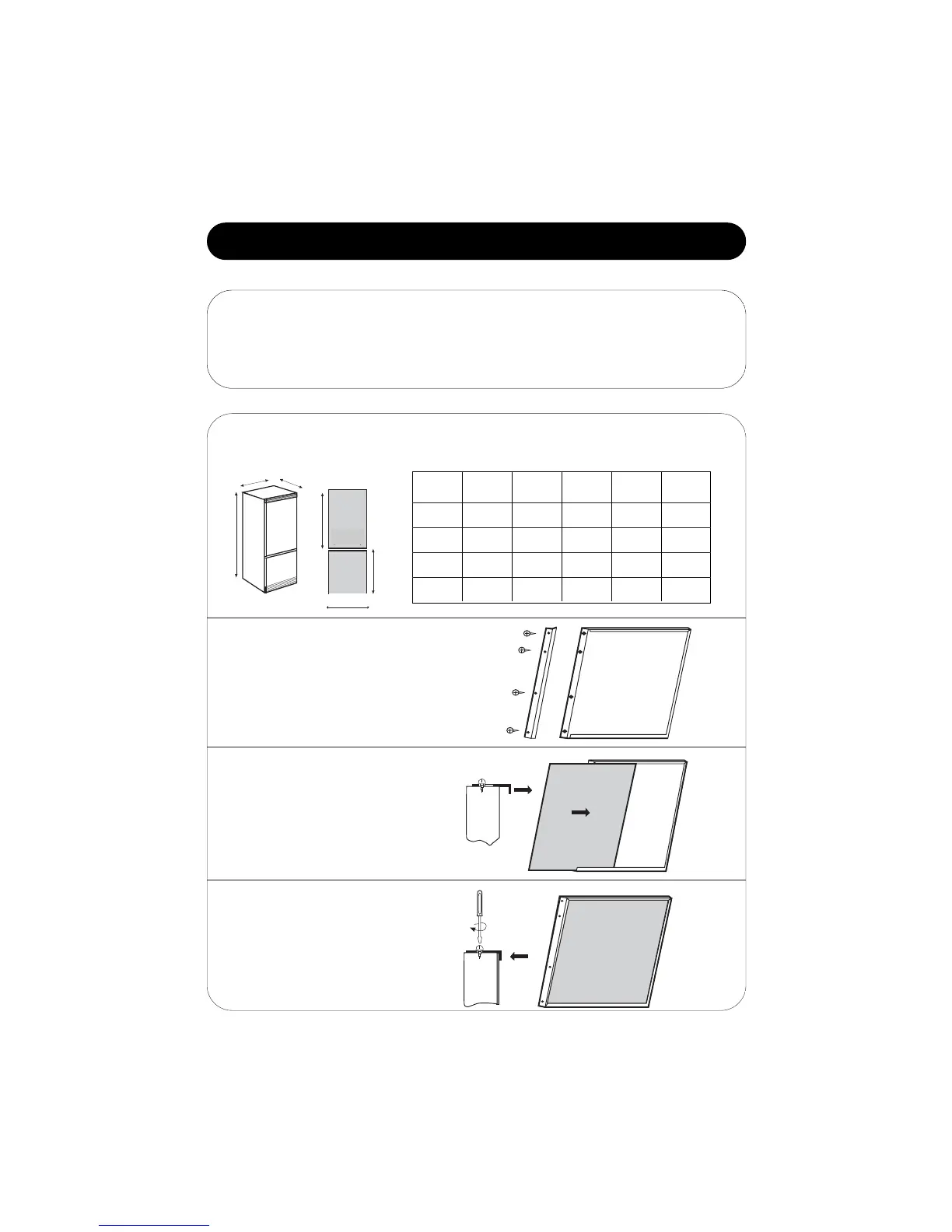 Dimensioni del frigorifero pannellabile e dei pannelli delle porte.