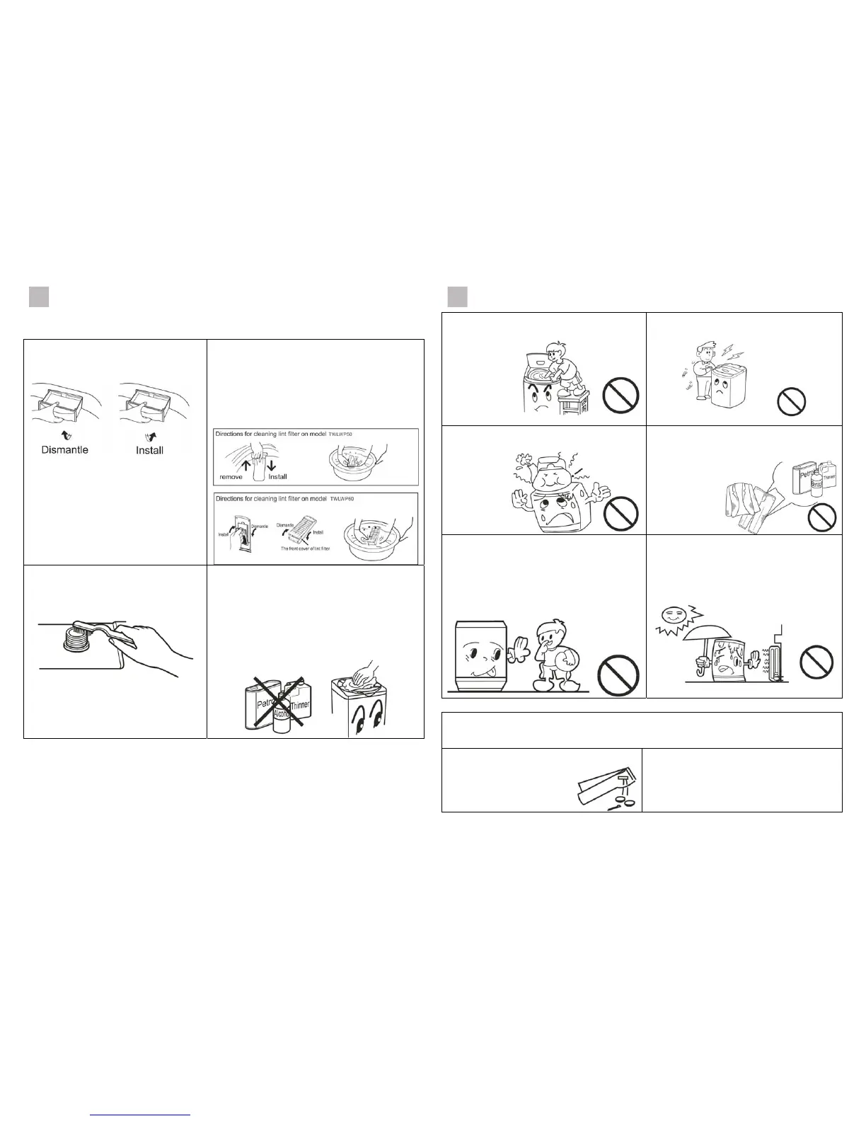 2. Do not store water in the washing machine for a long period without completing a wash