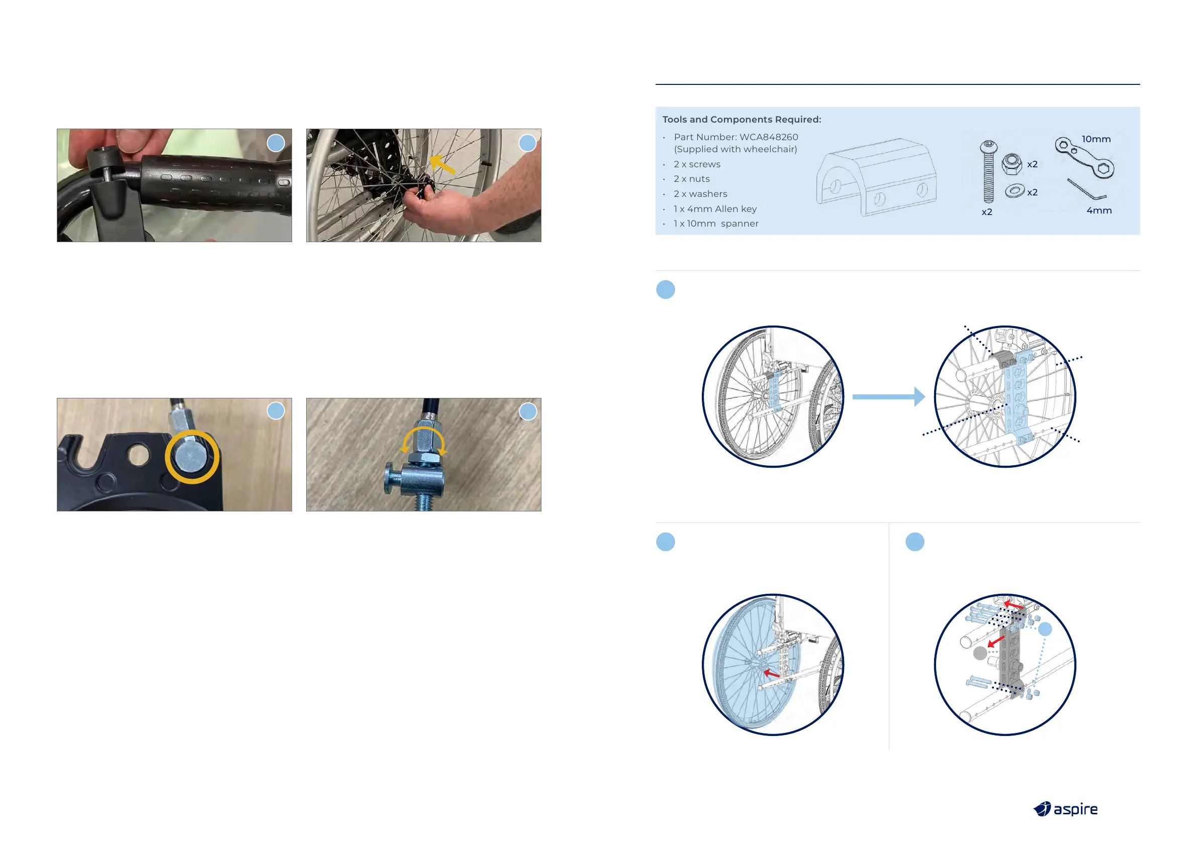 1. Remove wheel and quick release axle from wheelchair, slide out brake cable.