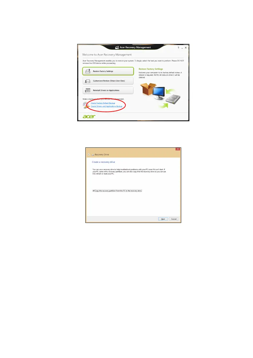 2. Click Create Factory Default Backup. The Recovery Drive window