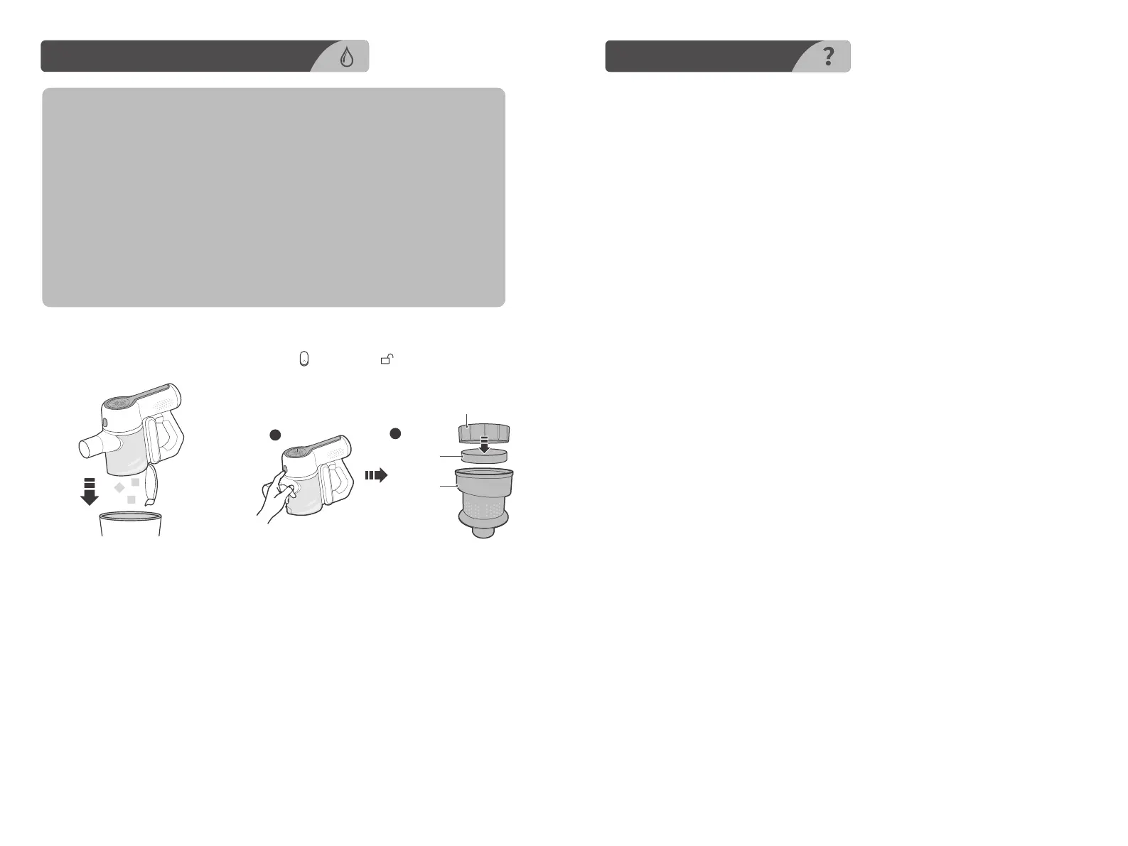 1. Press , and turn it to to remove the dust cup.