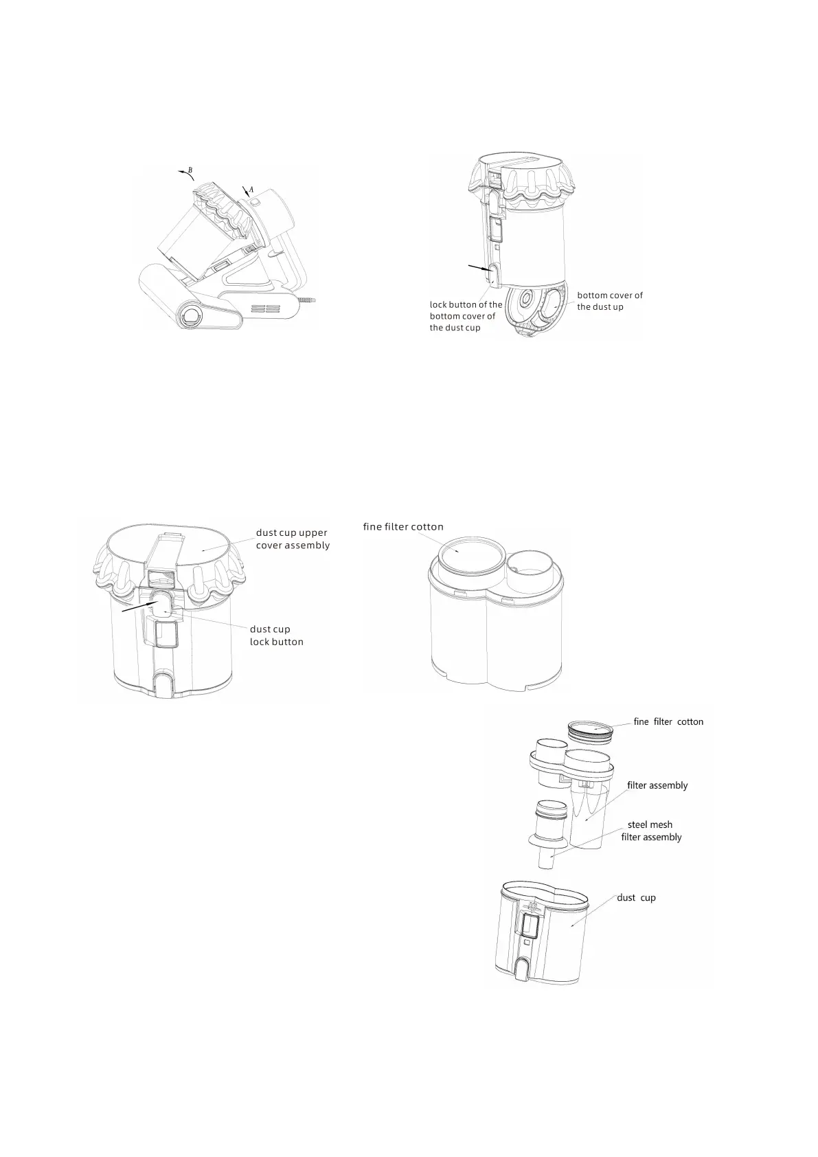 4. Clean and replace the fine filter cotton. Press the dust cup lock button