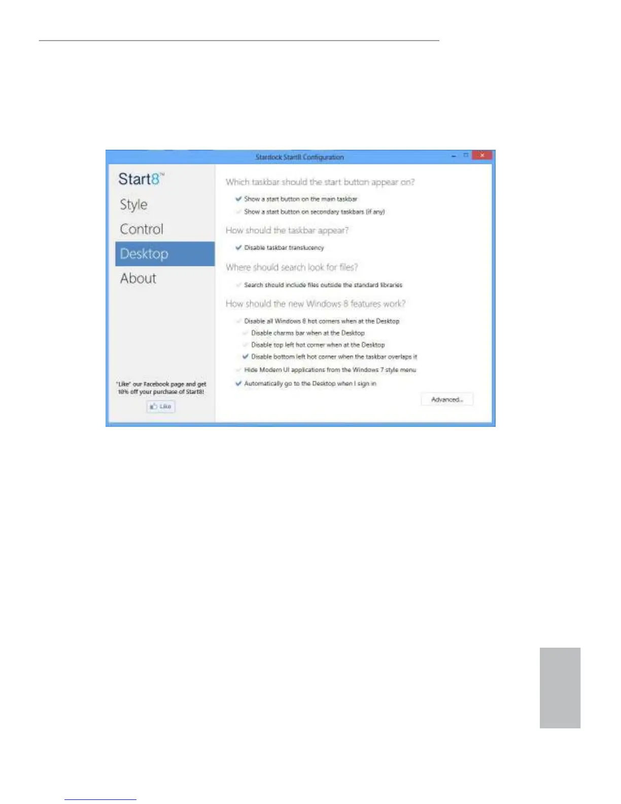 Displays information about Start8.