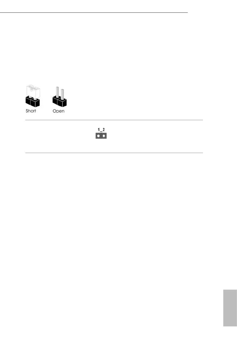 the pins, the jumper is “Short”. If no jumper cap is placed on the pins, the jumper is