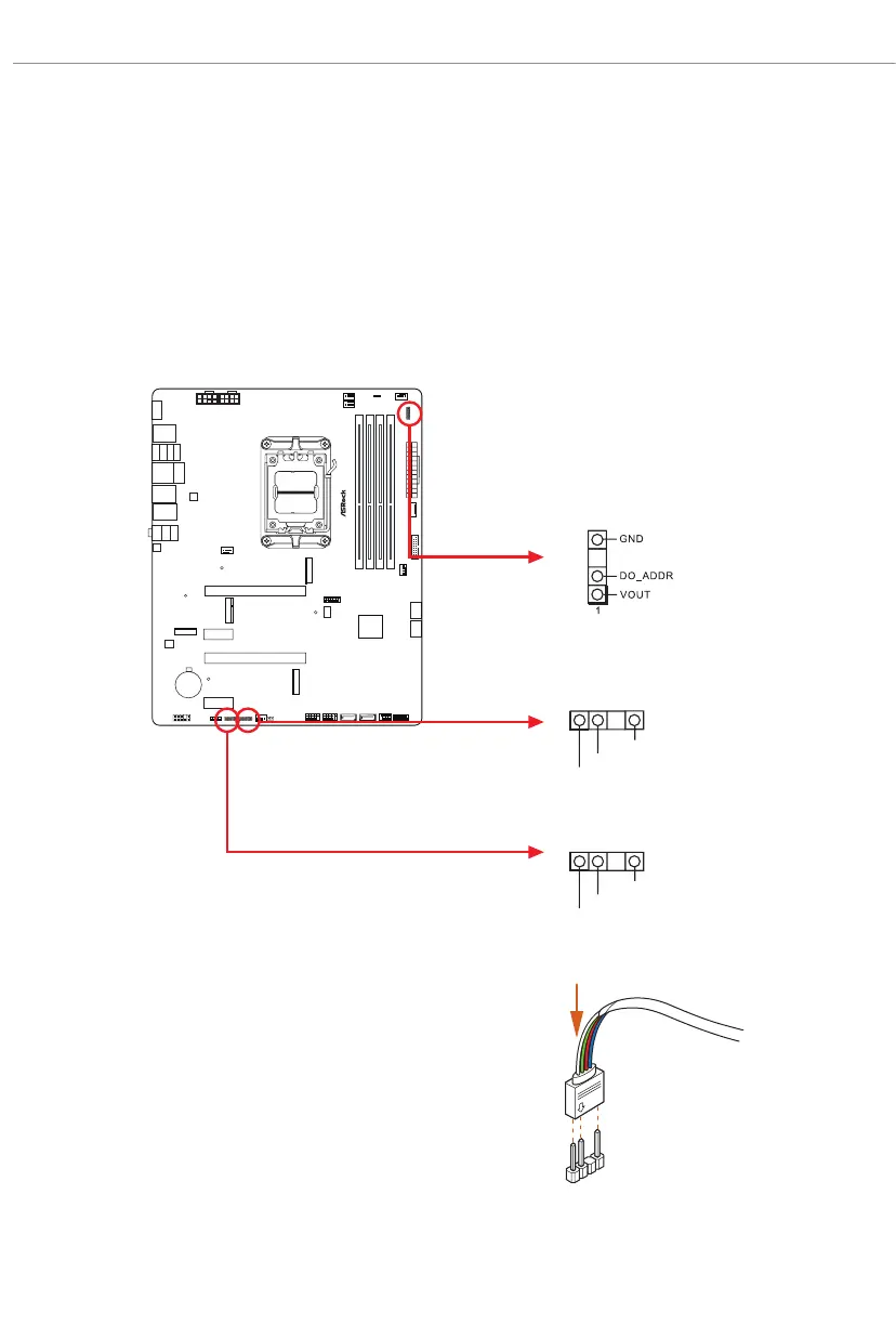Caution: Never install the Addressable LED cable in the wrong orientation; otherwise,