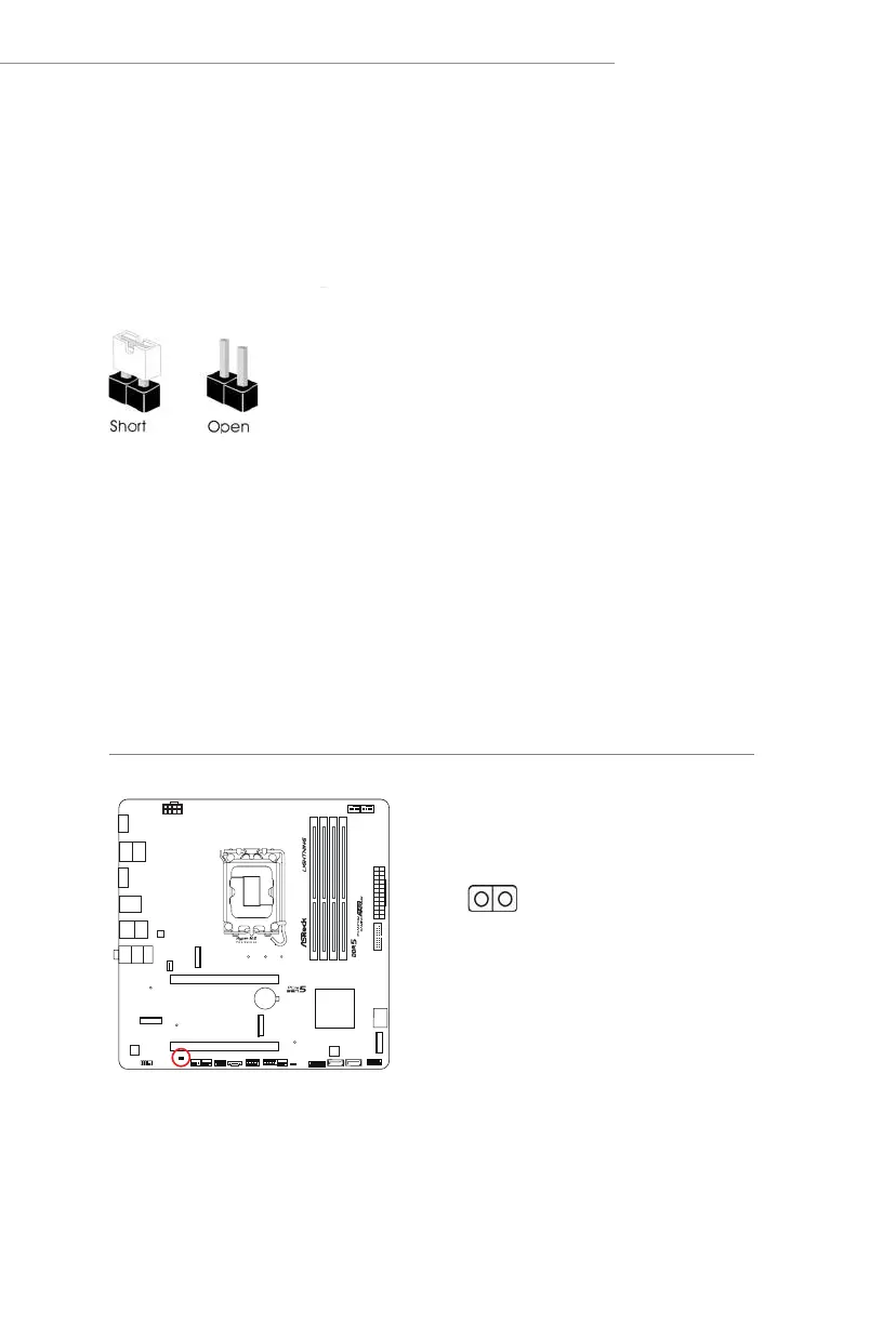 the pins, the jumper is “Short”. If no jumper cap is placed on the pins, the jumper is