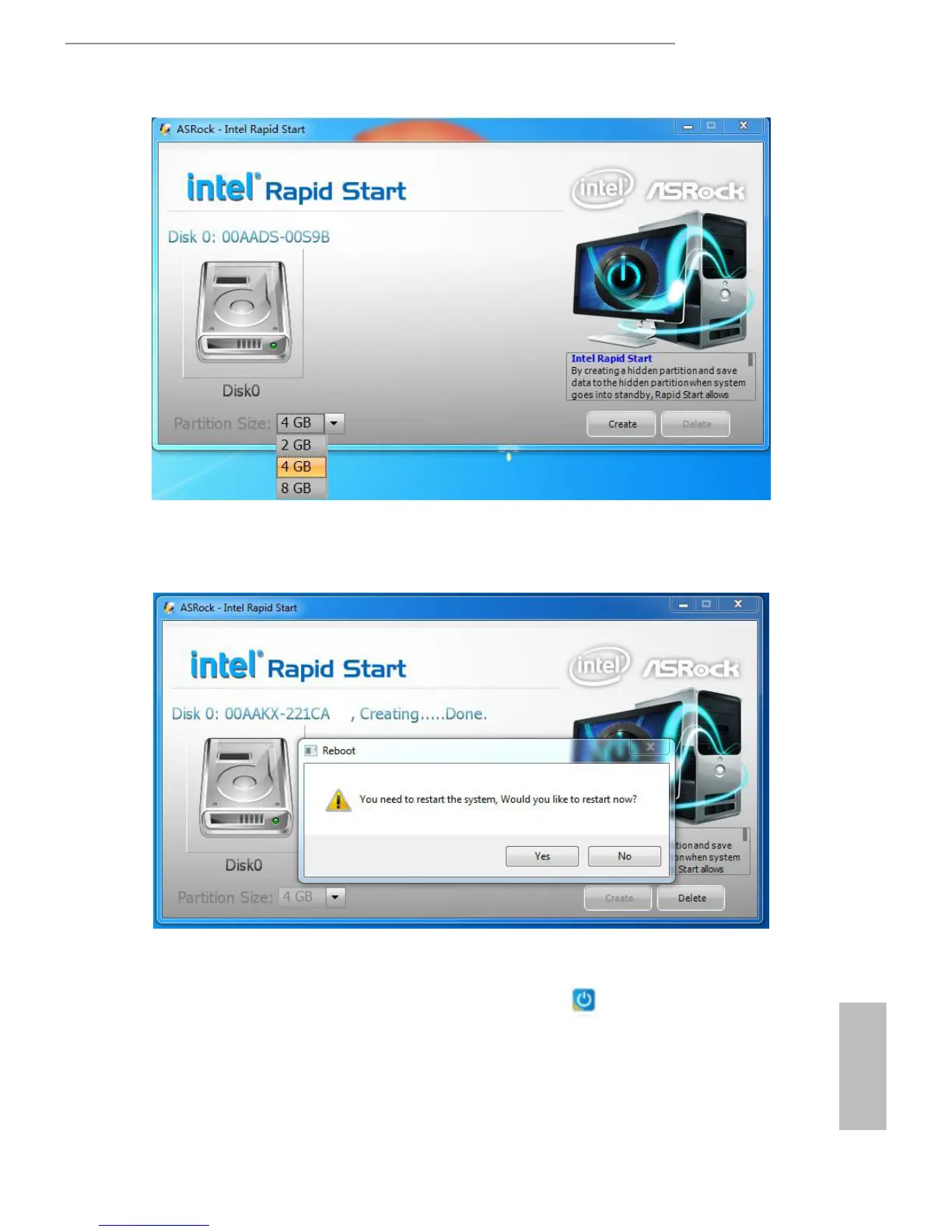 Double-click the Intel® Rapid Start Technology Manager icon in the Windows