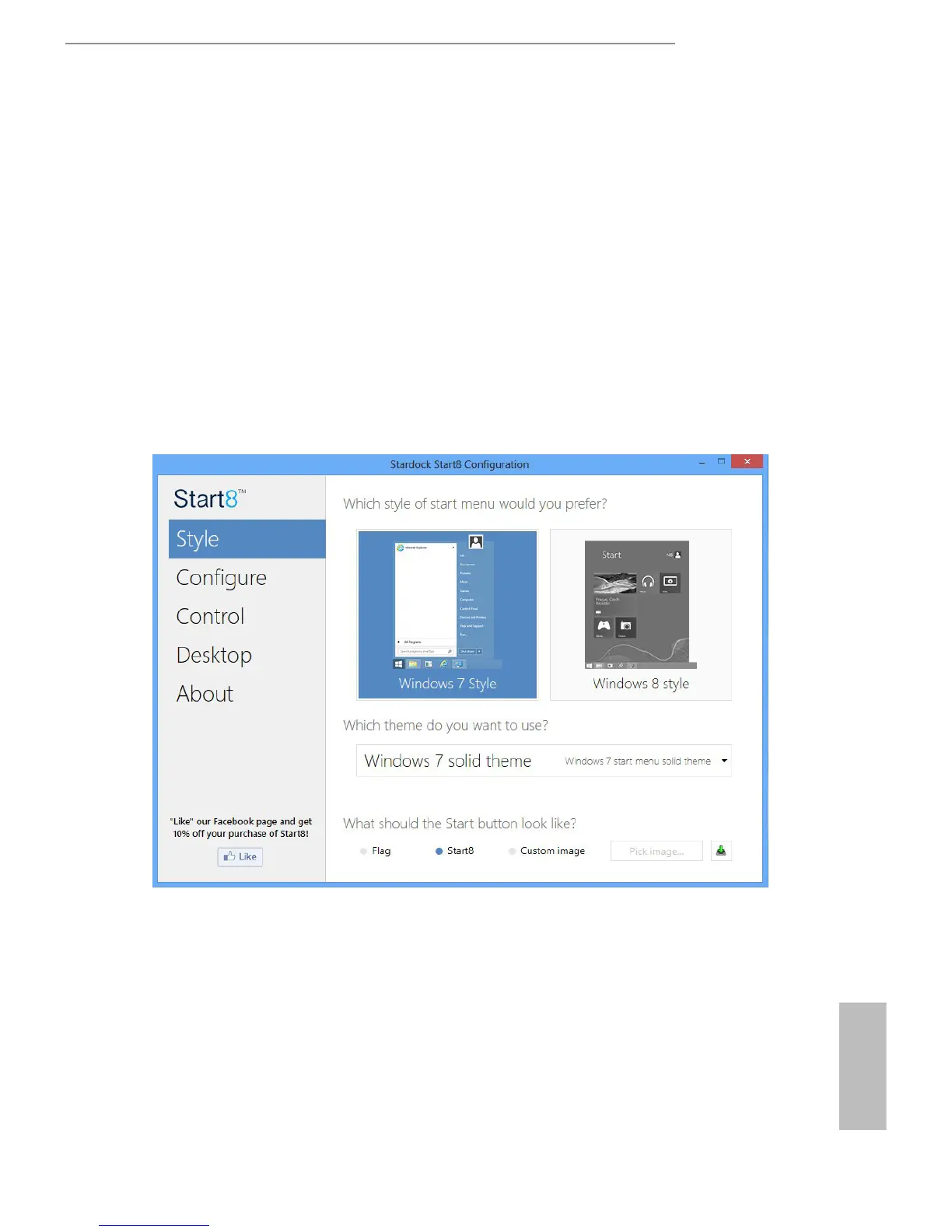 Select between the Windows 7 style and Windows 8 style Start Menu. en select
