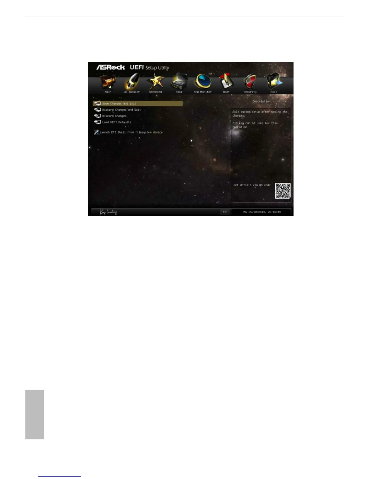 and exit setup?” will pop out. Select [OK] to save changes and exit the UEFI SETUP