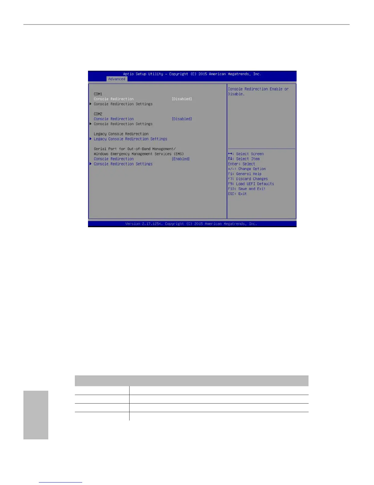 can select a COM Port to be used for Console Redirection.