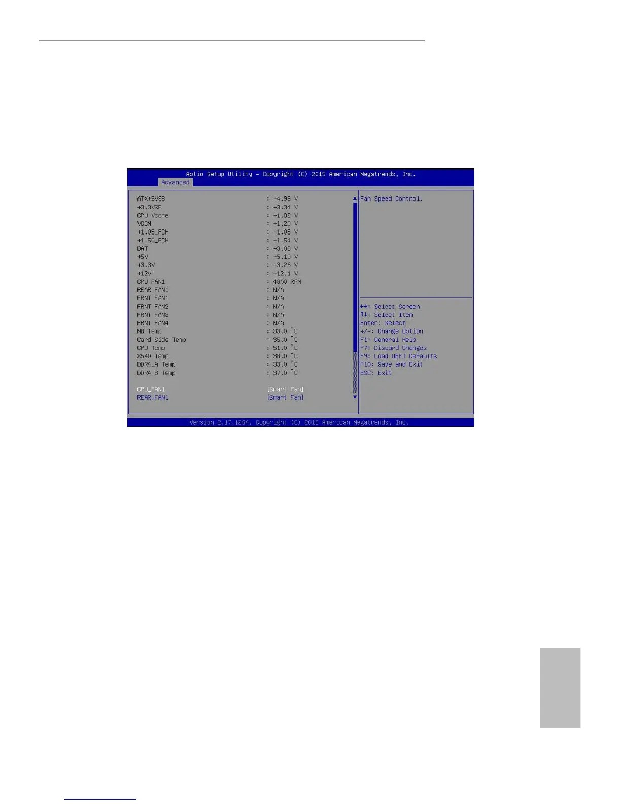 is allows you to set the rear fan 1’s speed. e default value is [Smart Fan].