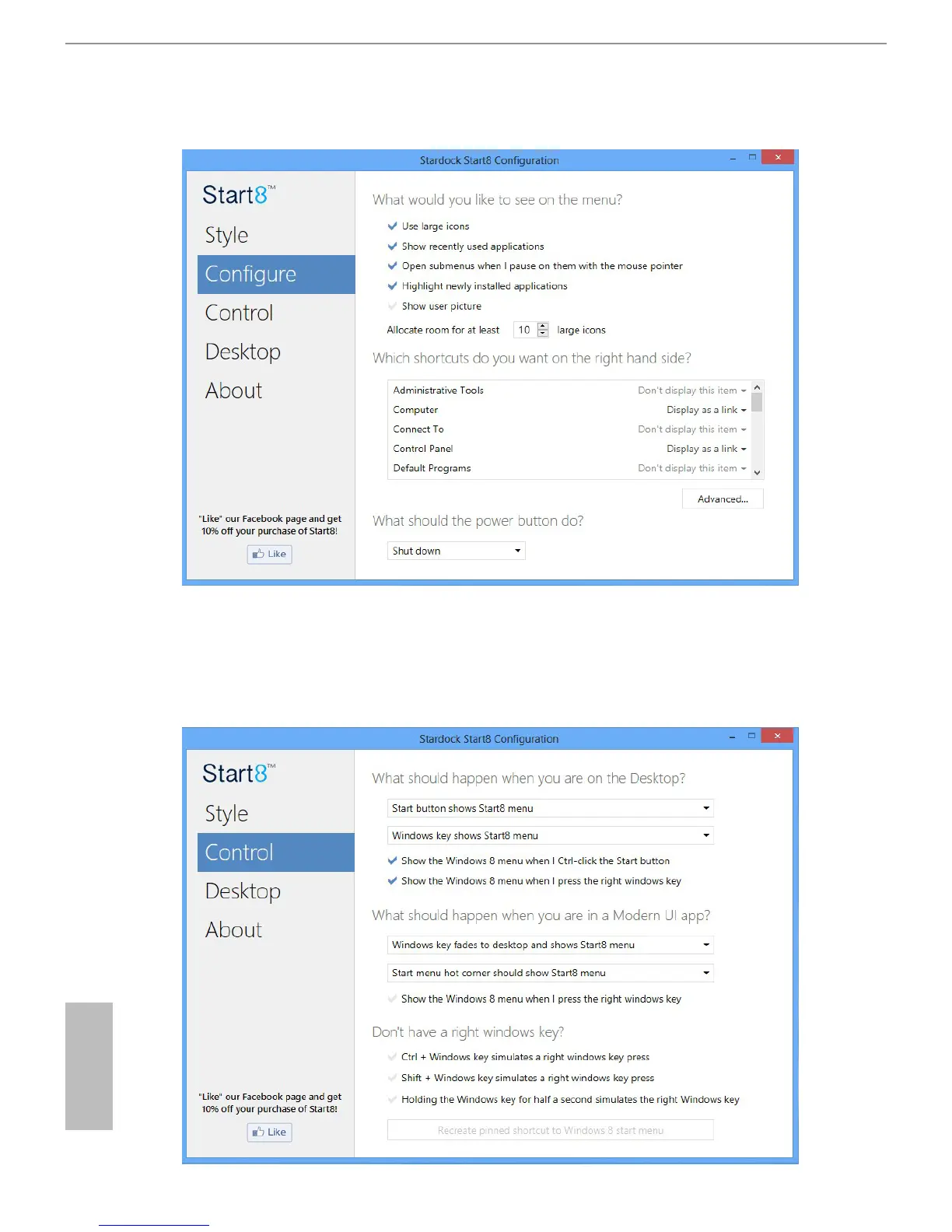 shortcuts you want Start Menu to display, quick access to recently used