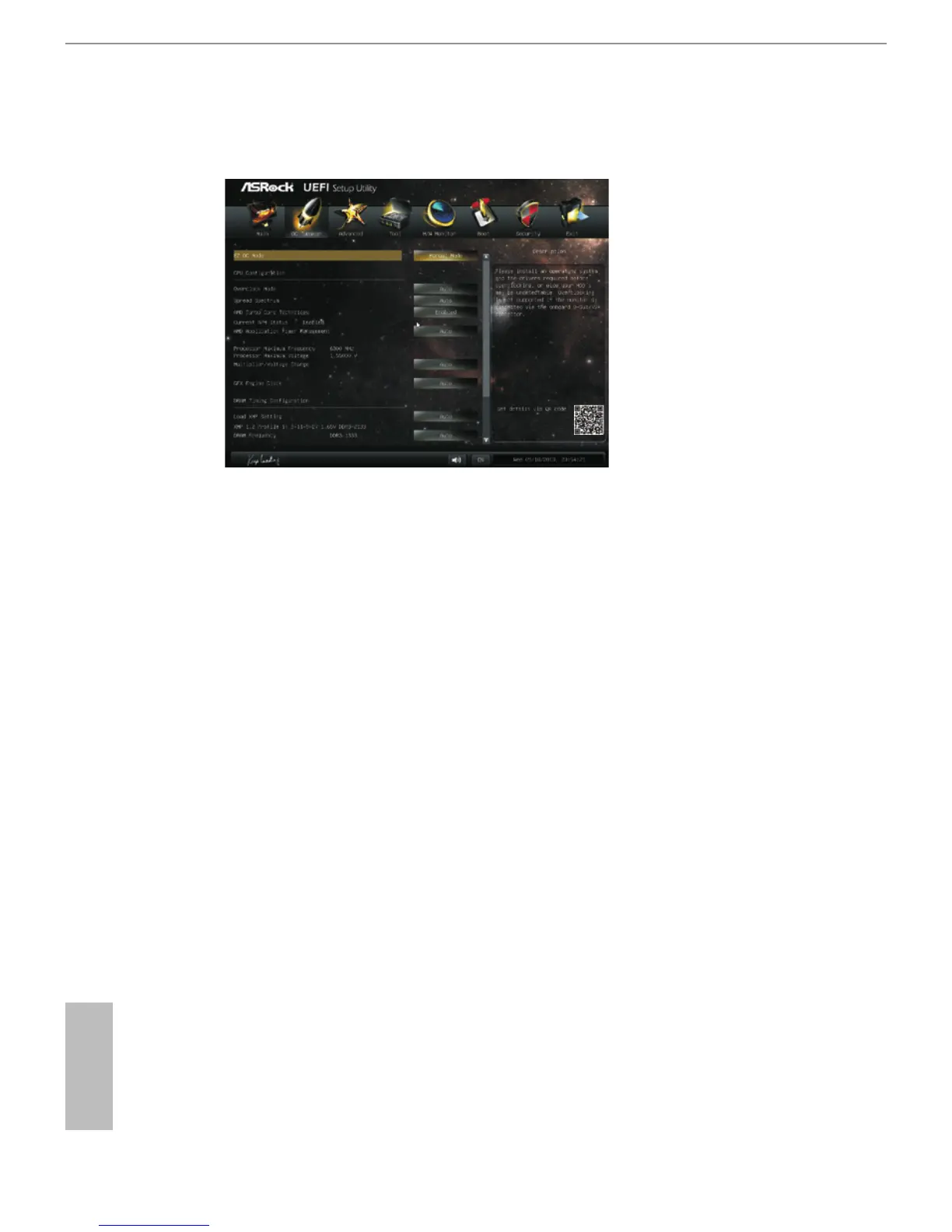 In the OC Tweaker screen, you can set up overclocking features.