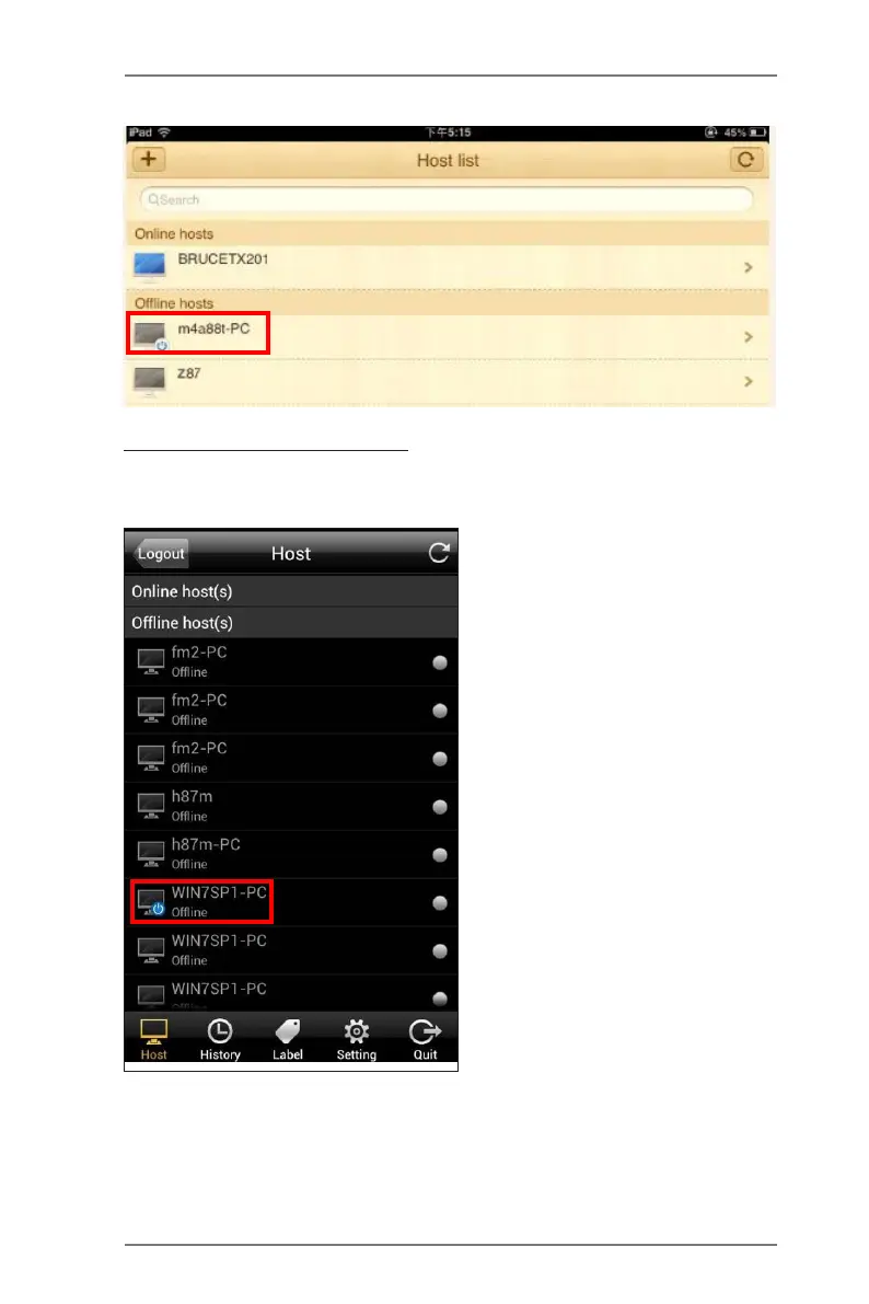 TaponeHost(OfinewithBluepowerbutton)ontheHostList.Thentapthe