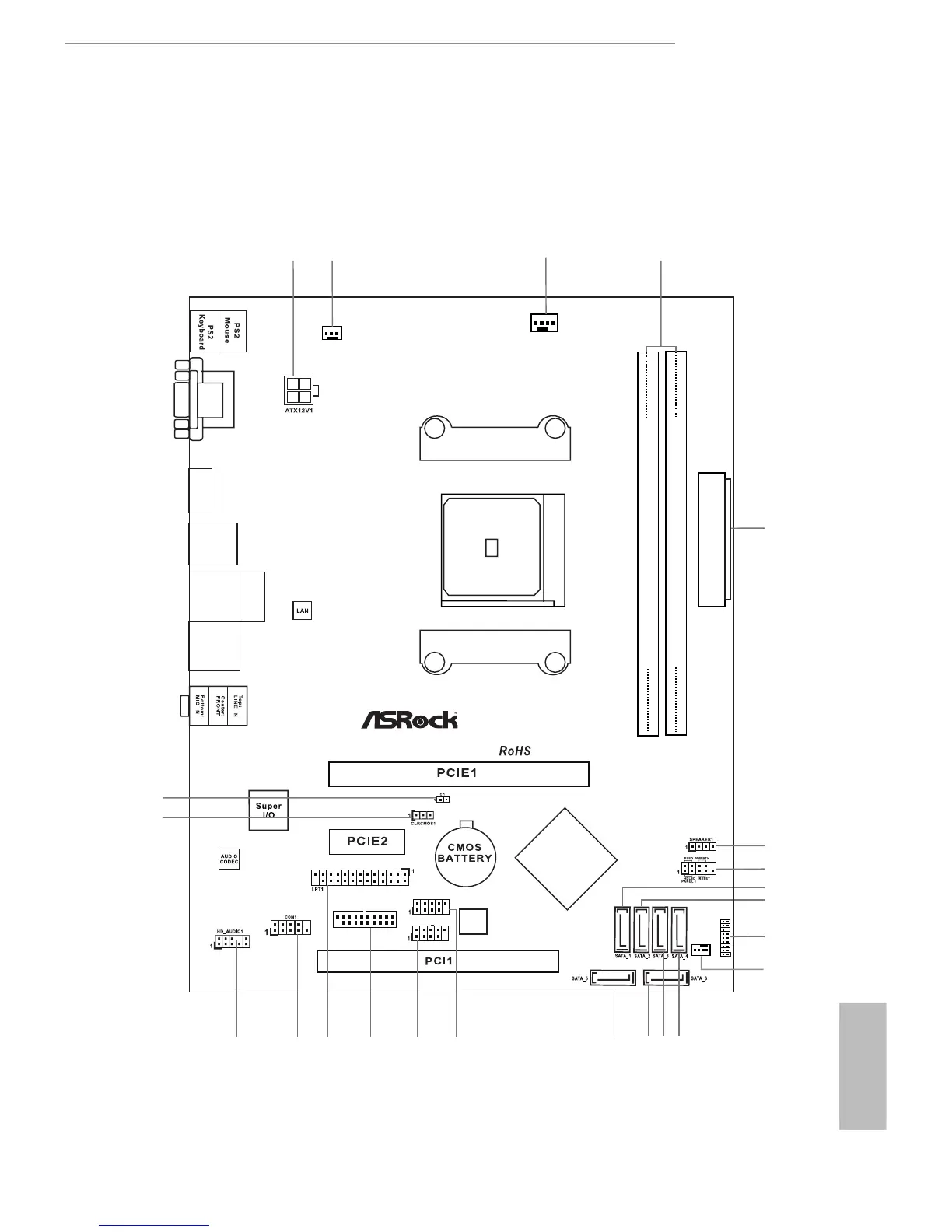 ASROCK FM2A78M-HD+ - Motherboard Layout and I;O Panel; Motherboard Layout Diagram