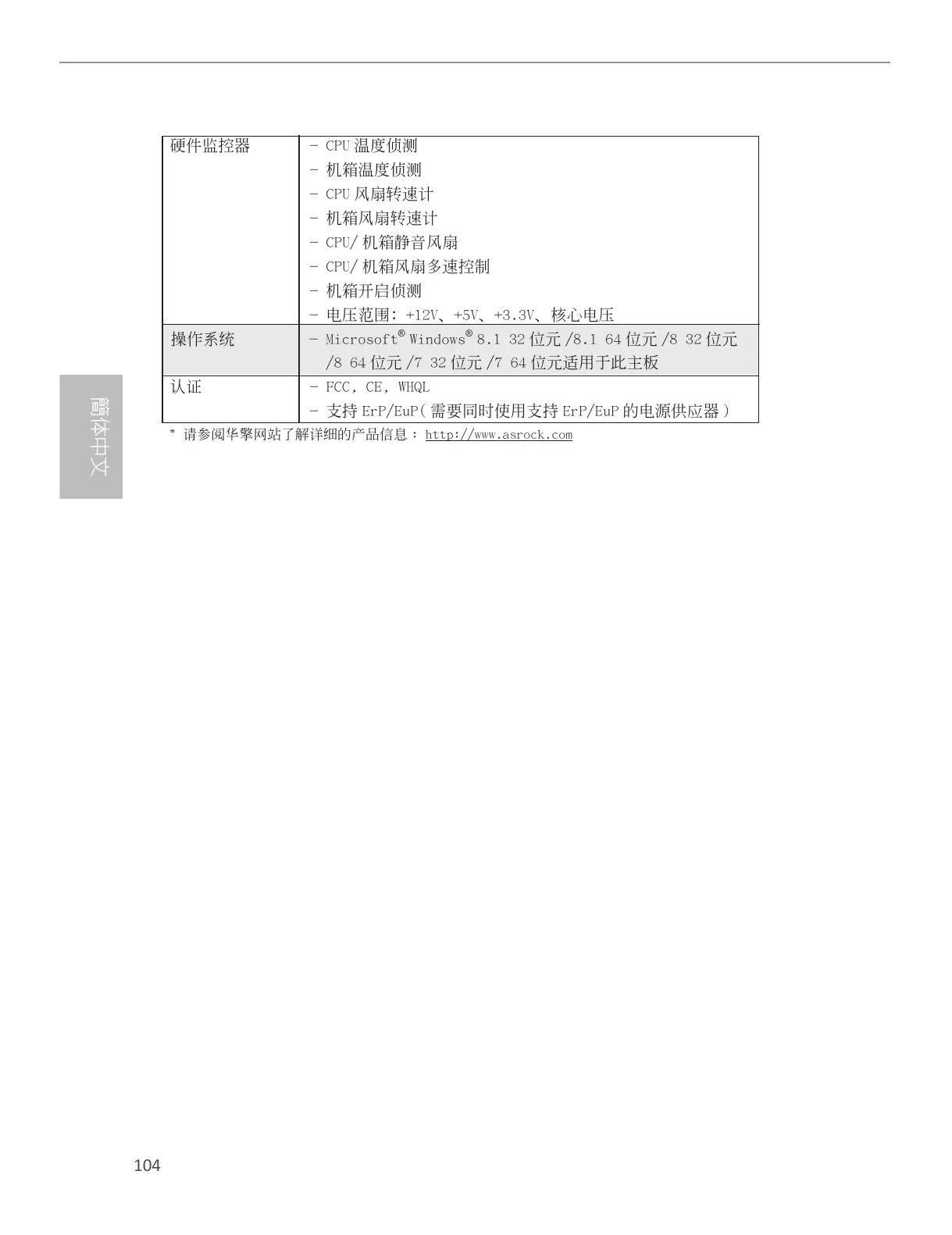 * 請參閱華擎網站了解詳細的產品信息 : http://www.asrock.com