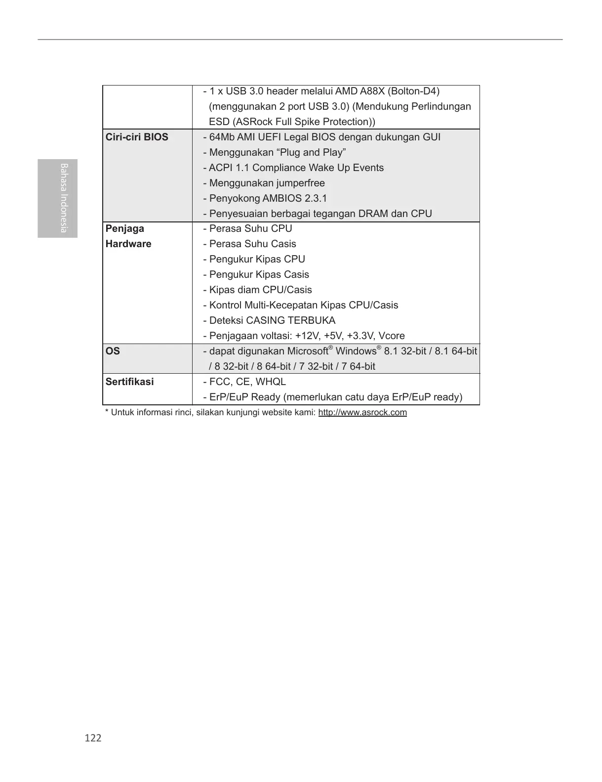 * Untuk informasi rinci, silakan kunjungi website kami: http://www.asrock.com