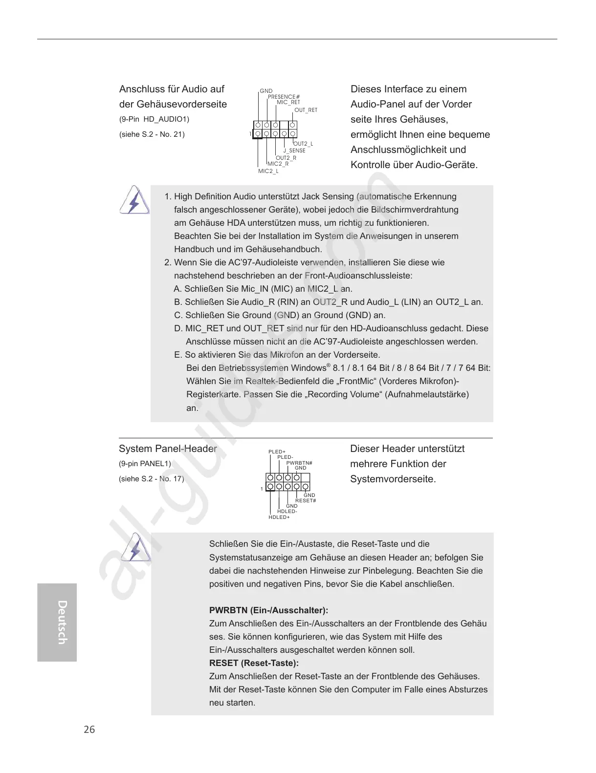 Anschlüsse müssen nicht an die AC’97-Audioleiste angeschlossen werden.