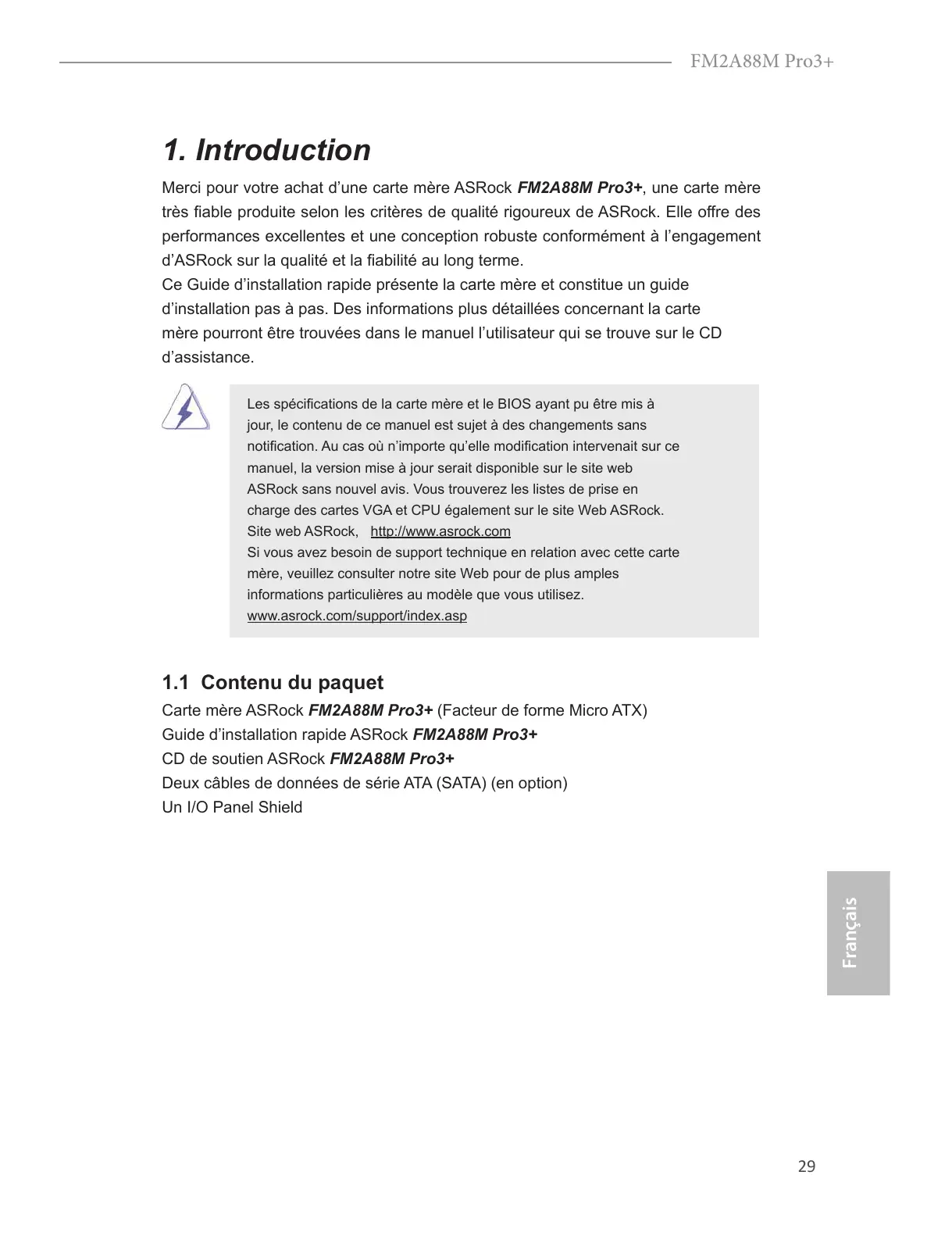 Guide d’installation rapide ASRock FM2A88M Pro3+