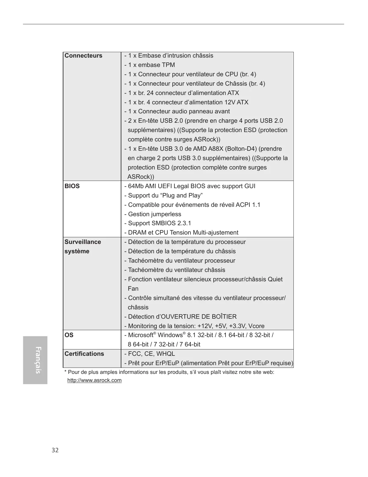 * Pour de plus amples informations sur les produits, s’il vous plaît visitez notre site web: