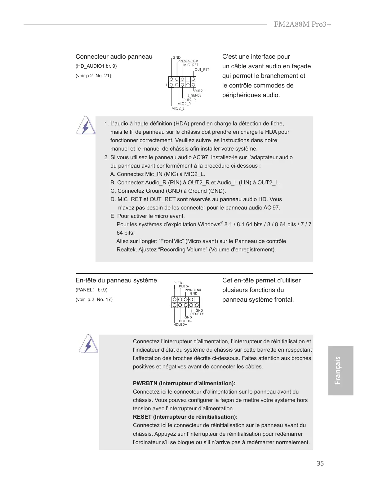 n’avez pas besoin de les connecter pour le panneau audio AC’97.