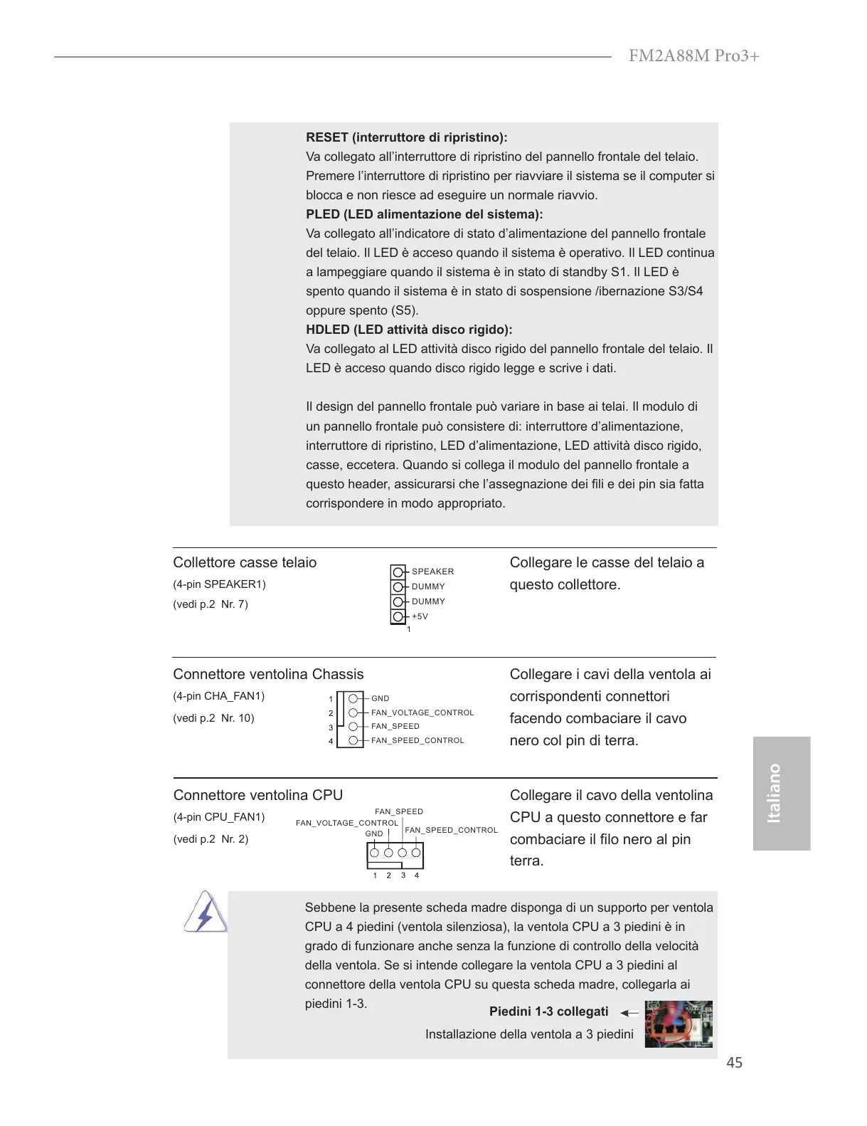 Installazione della ventola a 3 piedini