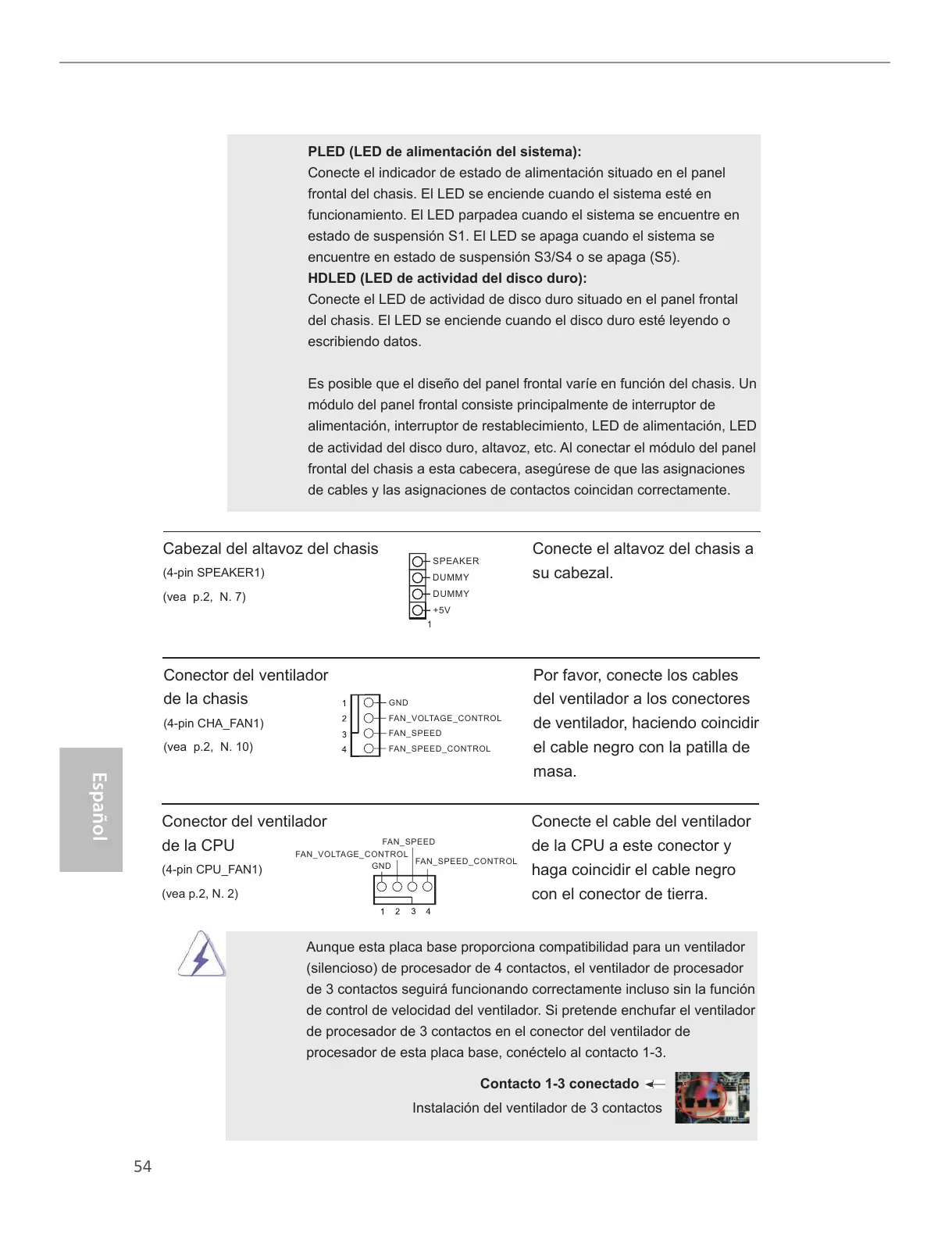 de actividad del disco duro, altavoz, etc. Al conectar el módulo del panel
