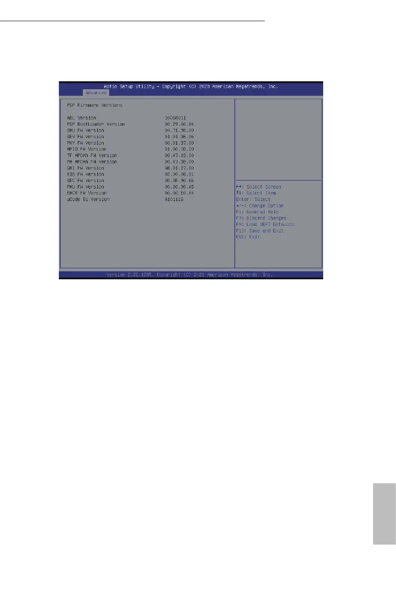 The PSP Firmware Verions displays the version information of ABL, PSP BootLoader,