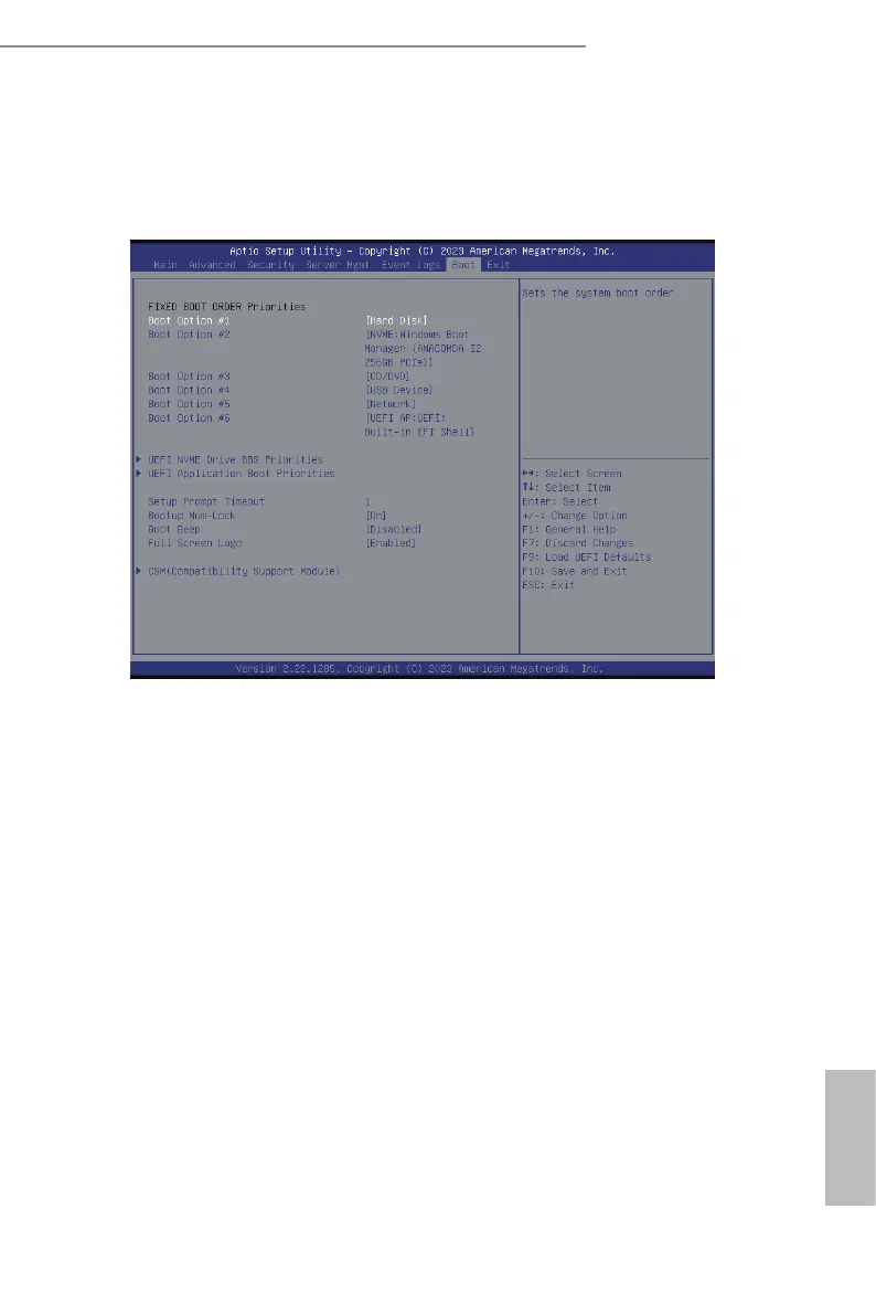In this section, it will display the available devices the system for user to congure the boot